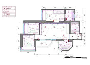 有些人會以為只有一般平面設計圖已十分足夠,但天花圖也是不可缺的一種。天花圖與平面設計圖的分別是,平面圖上作出的標示,乃為在地上的物件之規劃,至於天花圖則涉及天花裝修時各樣物件的設置。或許大家會覺得,天花的設計布置,主要為燈具的擺放,但實際天花的施工也涉及不少項目,例如空調的擺放,有線板、窗簾盒的設置,有些家居的廚房也會加設消防設備如灑水系統,而上述的設置也得跟橫樑位等作好配合,有了詳細的天花圖,可清楚規劃各樣天花裝置的擺放位置,避免出錯。