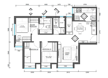 鋒主義會在施工開始前,先為客人的住宅提供室內設計出圖,而設計圖中的尺寸已透過專業的測量工具為房間進行精準的量度。我們建議擺放傢私的位置亦會根據實際情況來進行,讓客人可從室內設計圖得知傢俬的數量及尺寸。