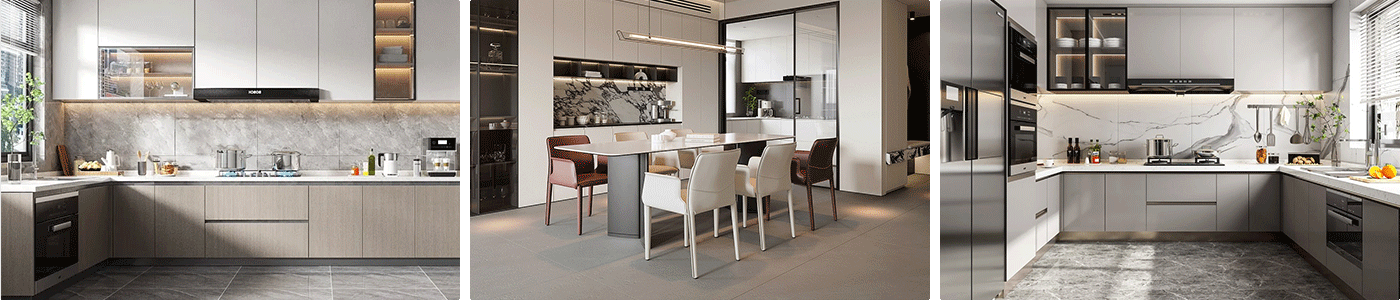 開放式廚房裝修的開揚設計能擴大視野,增強空間感,開放式廚房廚櫃的設計及選材可配合客飯廳設計,令兩者風格更為統一、美觀,讓規劃上充滿協調感。